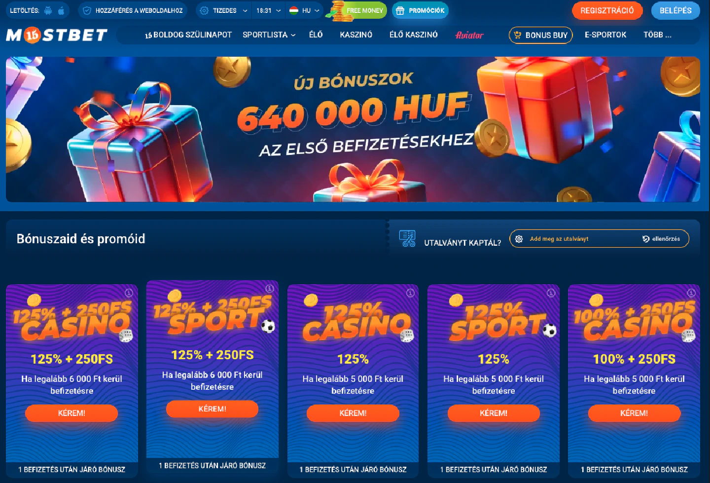 | Bónuszok és promók | Üdvözlő ajánlat 125%, cashback, free spin kampányok, promóciós kódok (MOSTBETGLOBAL24) |